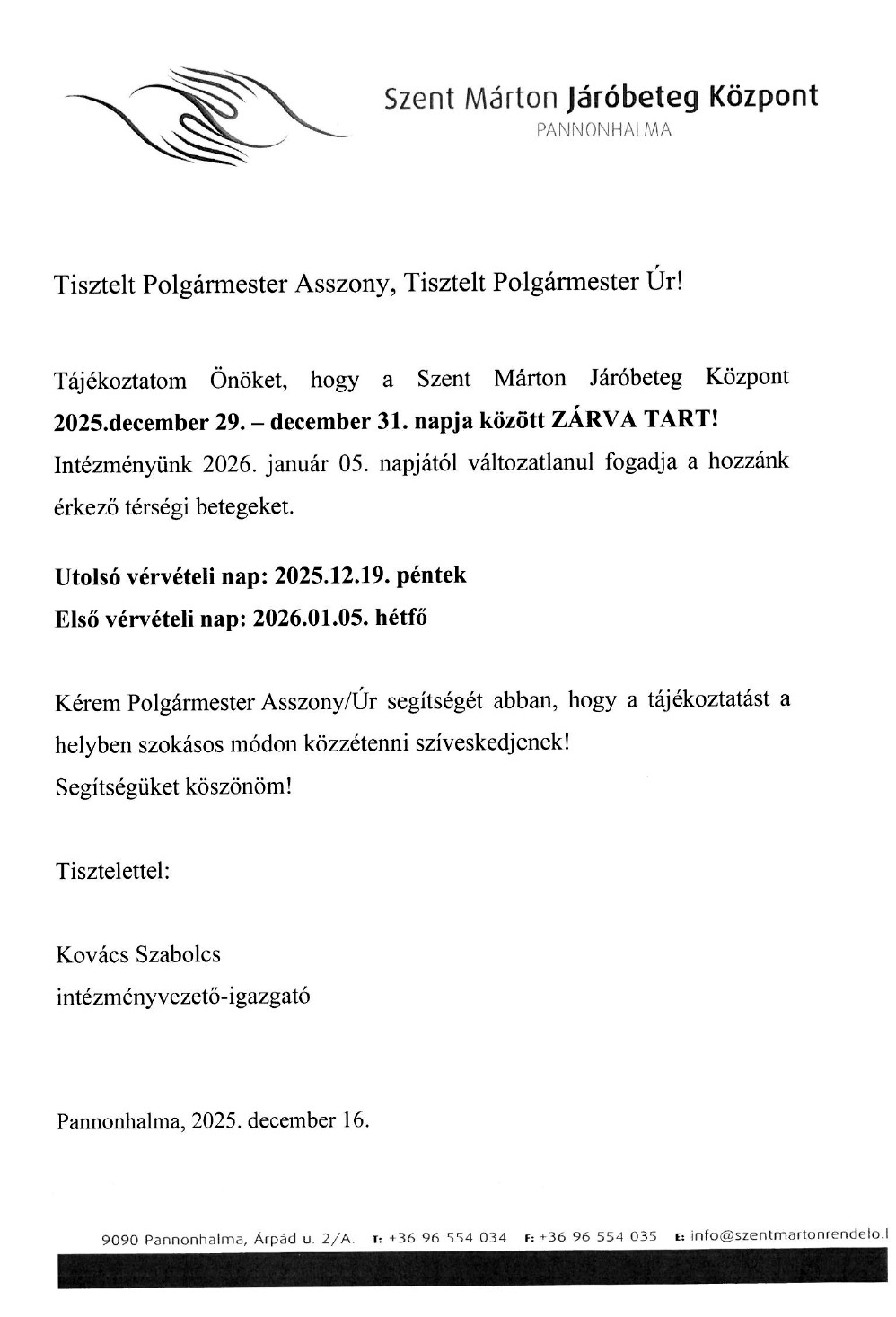 Kérem, hogy azon személyek, akik a 2025. évi támogatási összeget (időskorúak támogatása) még nem vették át, Pázmándfalu Község Önkormányzatában (9085 Pázmándfalu, Fő utca 64.) nyitvatartási időben jelentkezzenek!
