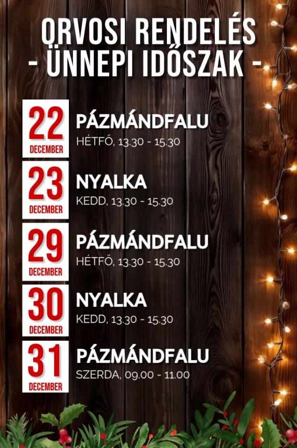 Tájékoztatjuk Önöket, hogy Pázmándfalu - Nyalka háziorvosi körzetben a rendelés május 21-23 között a következőképpen alakul.