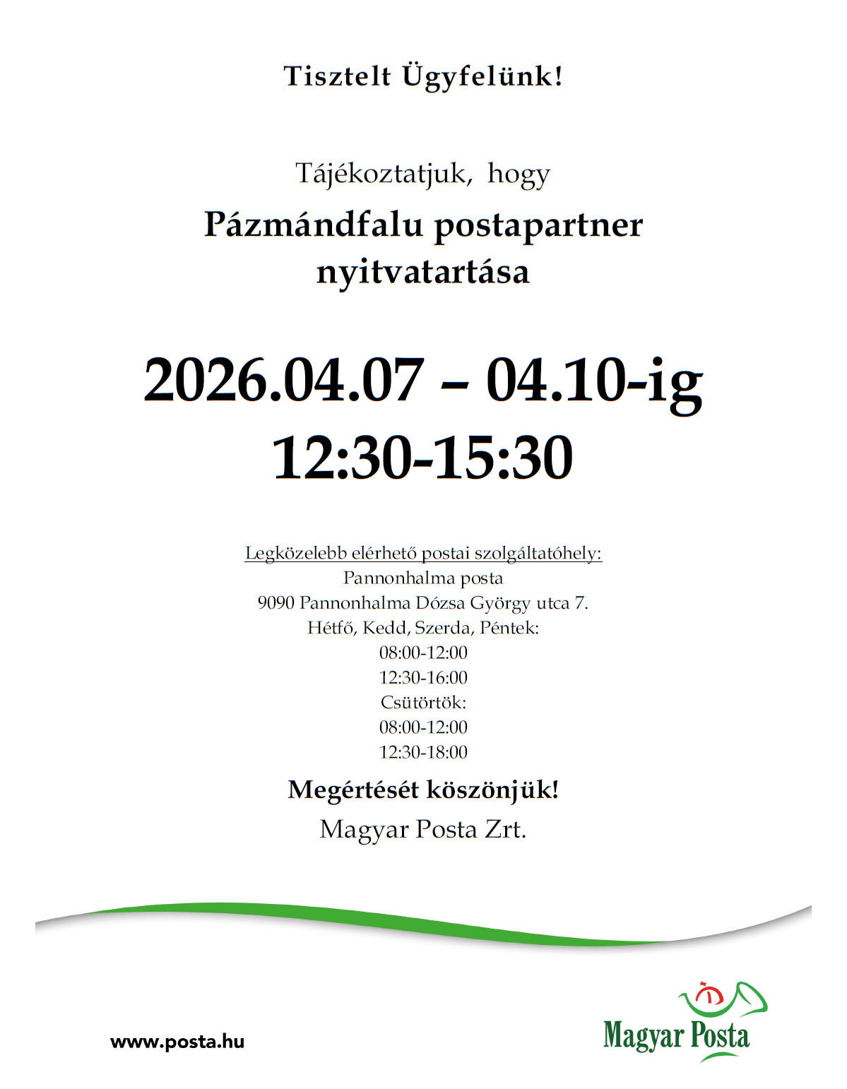A diákmunka programról tájékoztatást nyújt a Pázmándfalu Község Önkormányzata részéről: