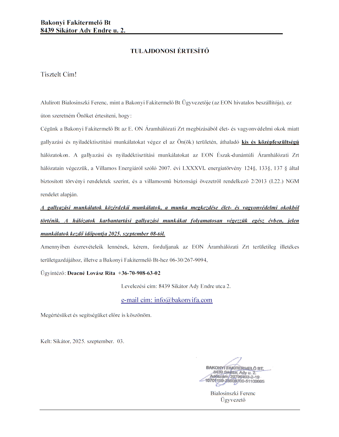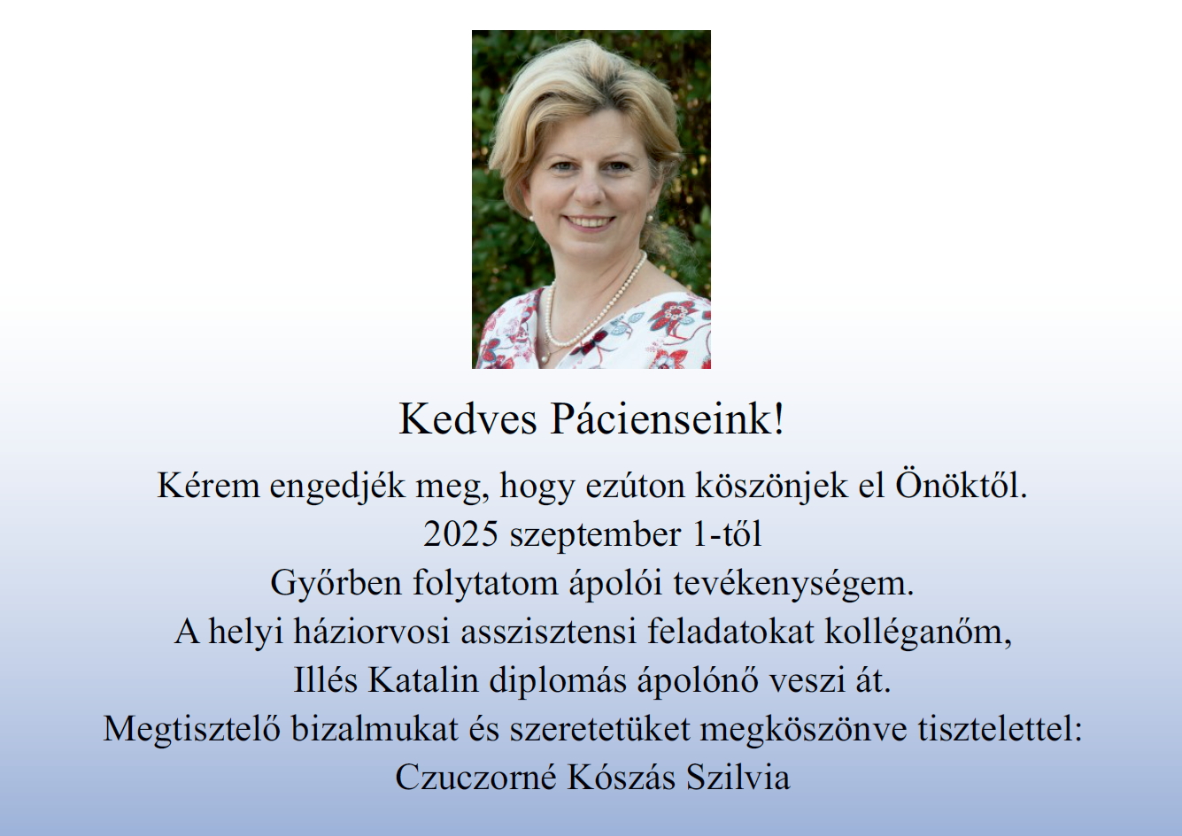 - Szabóné Petrőcz Olívia ig.ea. a +36-96/470-070-es telefonszámon