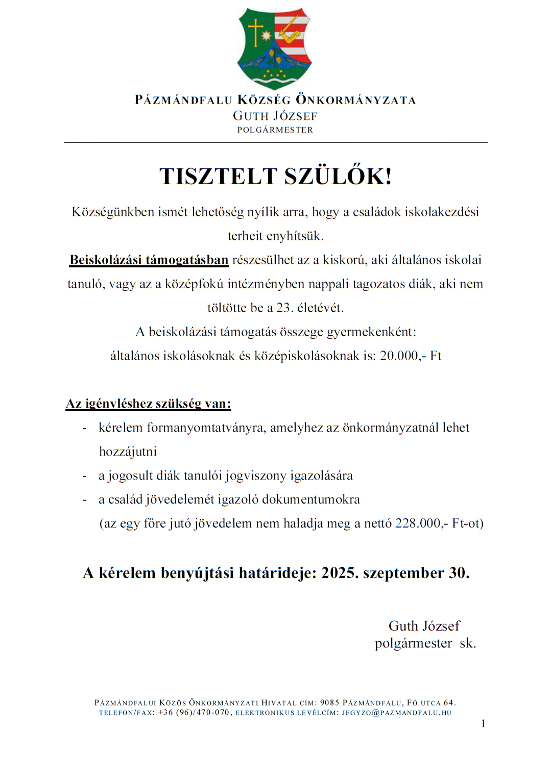 - Guth József polgármester +36-20/214-9627-es telefonszámon