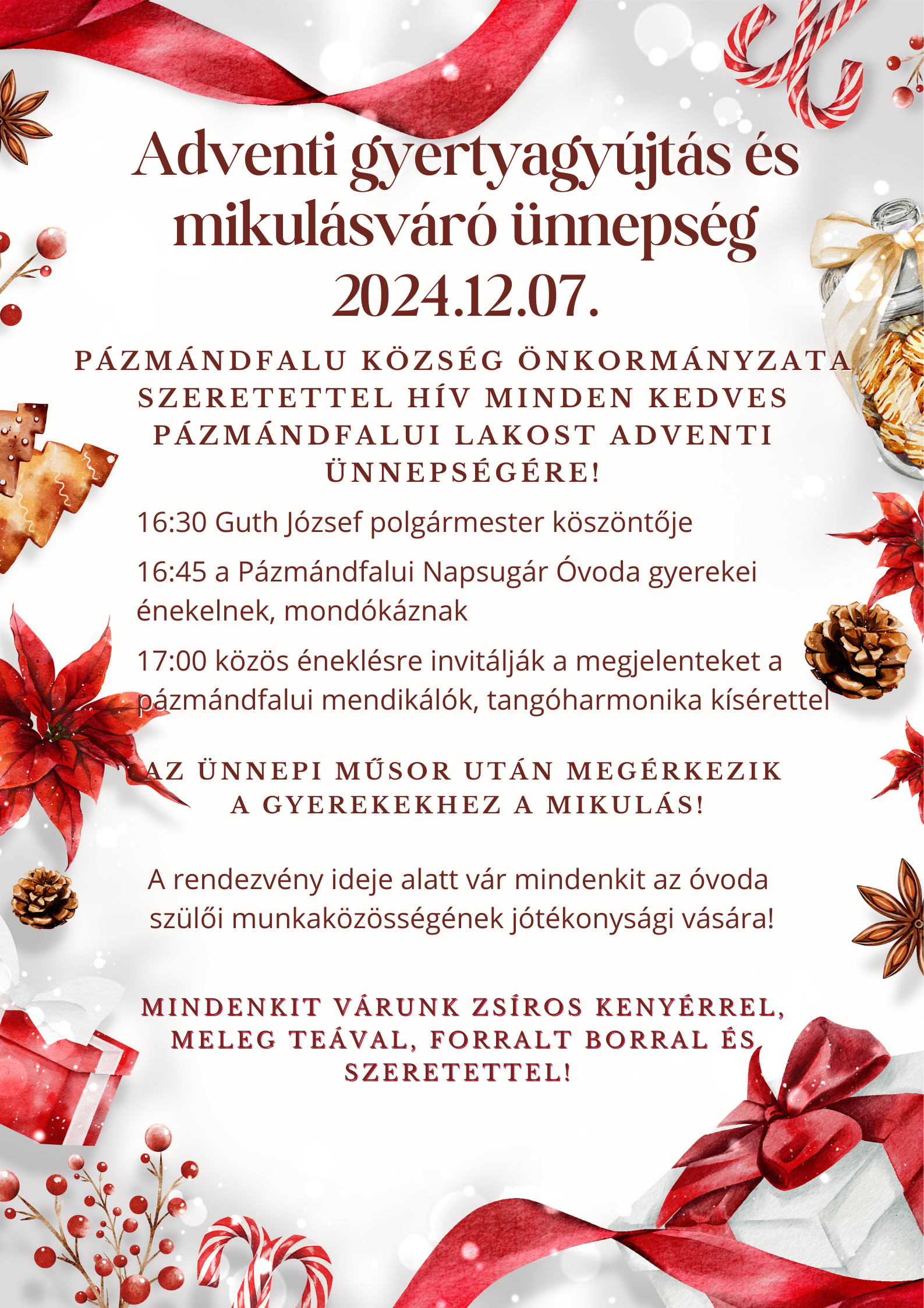 Meghívó adventi gyertyagyújtásra és mikulásváró ünnepségre
